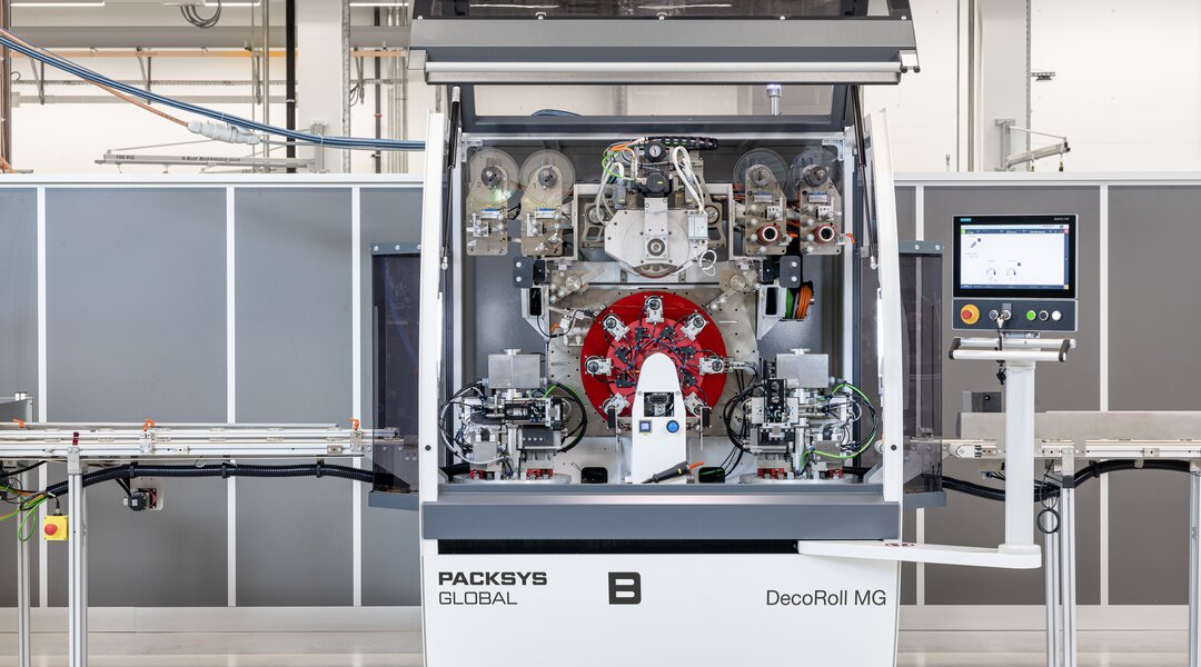Hochpräzises Heissprägen von Glasgefässen/-objekten wie z.B. Parfüm-, Likör-, Getränkeflaschen oder Cremetiegel sowie das Bedrucken der Teile mit Bildfolie.
